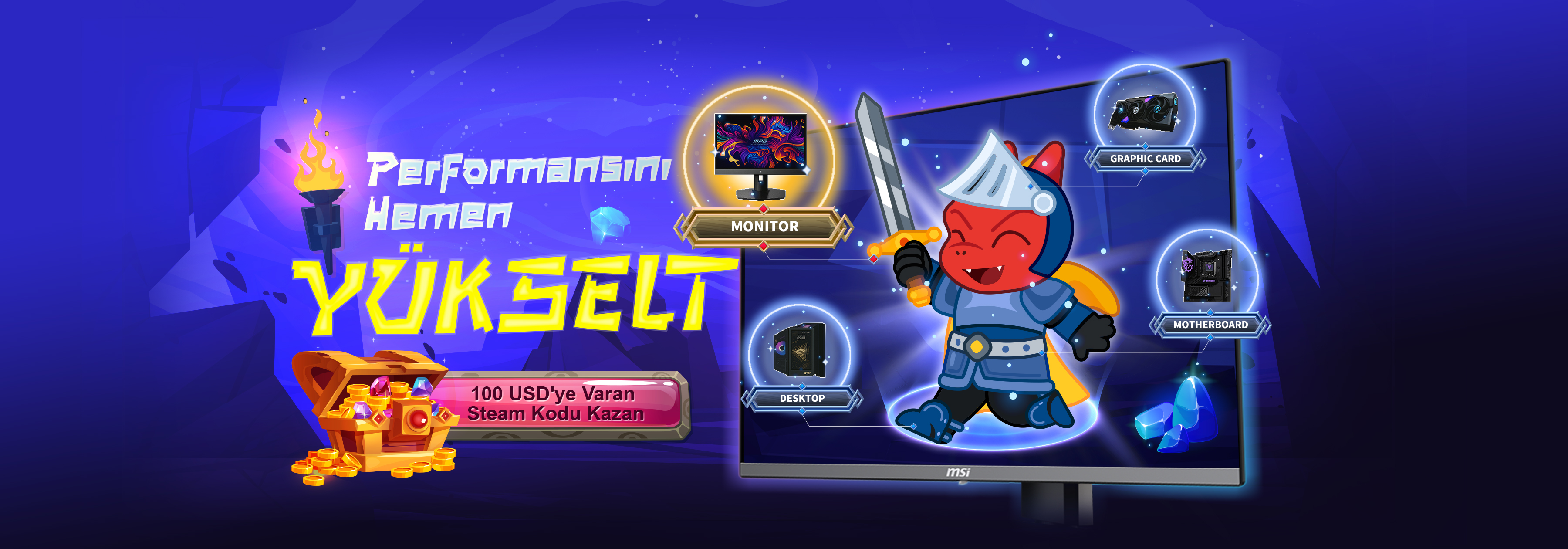 - Ekran kartı /anakart/masaüstü oyun bilgisayarı/QD-OLED oyuncu monitörü (promosyona dahil olmayan) ürünlerinden herhangi biri ile talep edeerek 1 set $100 dolarlık Steam kodu alabilirsininz.